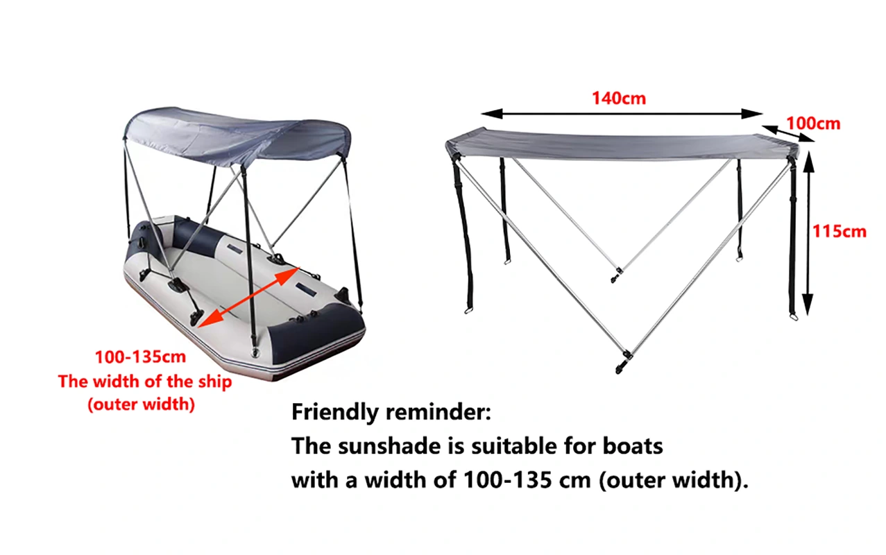Aluminium Extensible Boat Canopy.Geeignet fir opbloosbar Dinghy, Kanu, Kajak, Fëscherboot. Eise Boot Schied hält Iech virun der Sonn a Reen, ideal fir Runabout Boote, V-Hull Boats, Jon Boat, Bass Boats, Opblaasbare Boats, Fiberglass BoatsZhejiang Jiayu Outdoor Products Co., Ltd kann an nëmmen e puer Minutten ouni speziell ofgeschloss ginn Tools fir datt Dir et einfach a séier installéiere kënnt.