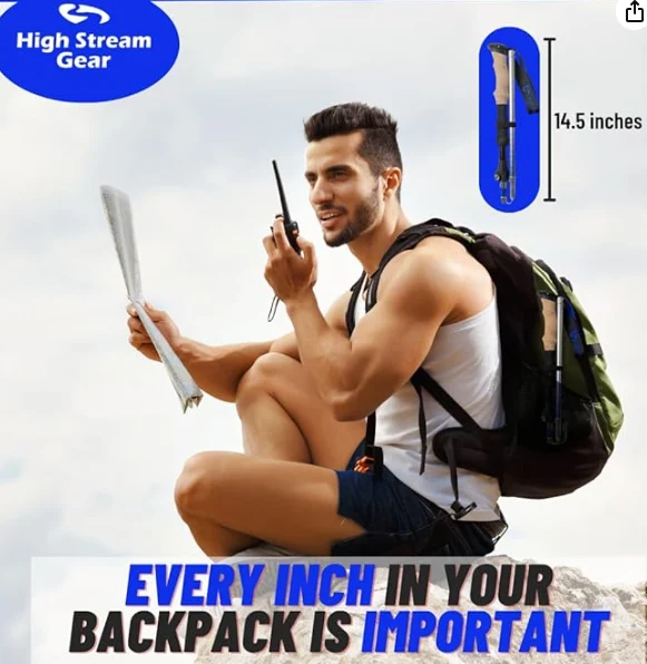 Wanderungspole fir den Hikierer kollaps erof op 37cm (14,5 Zoll) an weien all 10 Unzen Iech all Wesentlechen a perséinlech Gang.