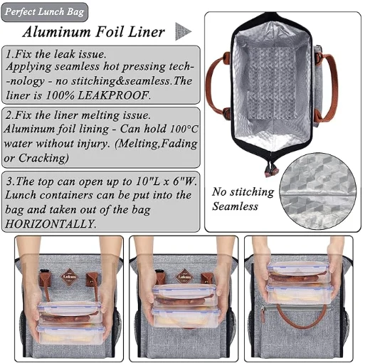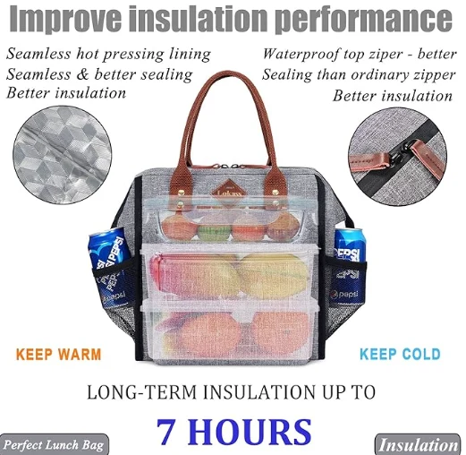Outdoor Aluminium Folie Cooler Taschen ass 100% Lecker Beweis, einfach ze botzen an net einfach ze botzen. Nylont Stoff ass Waasserbeständeg an den Top Zipper ass waasserdicht. D'Funktiounen vu waasserdicht an isoléiert vun dësem Mëttegiessen Täsch sinn exzellent.