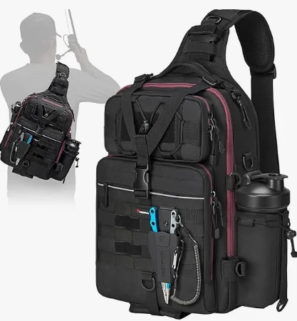 Sinten a Outdoor Faassstilling, Fëscherei Maacht mat dem Auswuch mat engem Ausruhalt, eisen 1000d Helsel ënner dem a Abrasion-Resistent. Eise Kam Buckles an SBS Zips sinn indestabel an elastesch